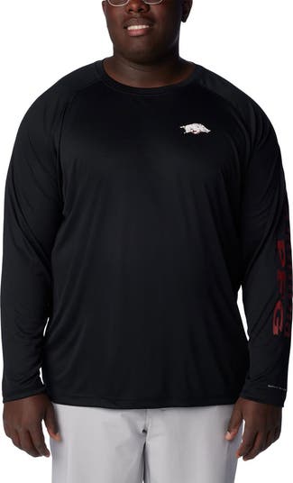 Men's Columbia Black Arkansas Razorbacks Big & Tall PFG Terminal Tackle Omni-Shade Raglan Long Sleeve T-Shirt