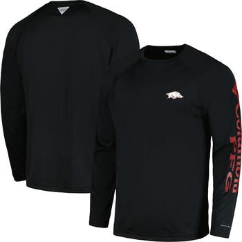 Men's Columbia Black Arkansas Razorbacks Terminal Tackle Omni-Shade Raglan Long Sleeve T-Shirt