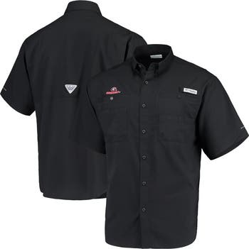 The Men's Columbia Black Georgia Bulldogs Team PFG Tamiami Omni-Shade Button-Down Shirt is the perfect way to show your support for the Georgia Bulldogs. With its embroidered graphics and front tackle pockets, this shirt is both stylish and functional. Mesh-lined vents at the center back keep you cool and comfortable, while the rod holder on the front with hook-and-loop closure is perfect for keeping your fishing rod close at hand. The rounded hem with side splits gives this shirt a relaxed and casual look, while the UPF 40 sun protection keeps you safe from the sun's harmful rays. Whether you're cheering on the Bulldogs from the stands or just relaxing at home, this shirt is a must-have for any Georgia Bulldogs fan.