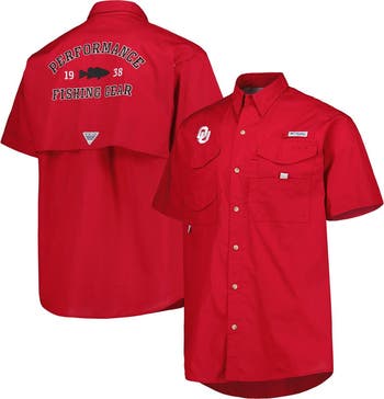 The Men's Columbia Crimson Oklahoma Sooners Bonehead Button-Up Shirt is the perfect way to show your support for the Oklahoma Sooners. With its embroidered graphics and four fly box pockets, this shirt is both stylish and functional. The mesh-lined vent at the center back will keep you cool and comfortable, while the rod holder loop at the left chest makes it easy to carry your fishing gear. Whether you're cheering on the Sooners at the game or just relaxing at home, this shirt is sure to become a favorite.