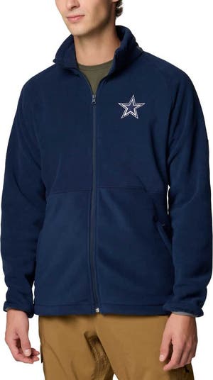 Stay warm during those chilly game days with this Dallas Cowboys Flanker IV Fleece Full-Zip Jacket from Columbia. This midweight jacket is perfect for moderate temperatures, featuring a cozy fleece lining and an adjustable hem for a snug, comfortable fit. Two front zippered pockets provide secure storage, making it a practical choice for game days or everyday wear.