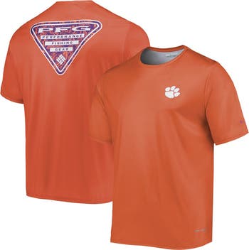 Show your unwavering support for the Clemson Tigers with the Columbia Terminal Tackle Omni-Shade T-Shirt. This vibrant orange tee features sublimated graphics that proudly display the Clemson Tigers logo, making it the perfect way to represent your team on game day or any day. The UPF 50+ sun protection ensures you stay comfortable and protected from the sun's harmful rays, while the recycled polyester material provides a sustainable and breathable fit.