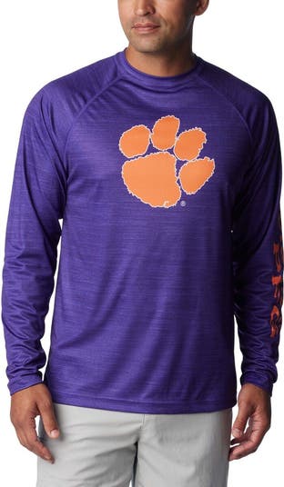 The Men's Columbia Purple Clemson Tigers PFG Terminal Tackle Omni-Shade Raglan Long Sleeve T-shirt is the perfect way to show your support for the Clemson Tigers. Made from moisture-wicking polyester, this shirt will keep you cool and comfortable all game long. Raglan sleeves and flatlock stitching provide a comfortable fit, while heat-sealed graphics ensure your Clemson Tigers pride never fades. With UPF 50 protection, this shirt also helps shield you from the sun's harmful rays.