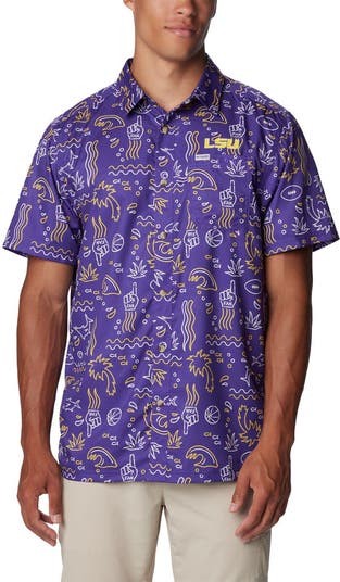 Enjoy lightweight comfort and protection from the sun's rays with a sea-worthy print in the form of this LSU Tigers Super Slack Tide button-up shirt. Columbia gives you a bold camp shirt fit for time out on the water thanks to its integrated Omni-Shade and Omni-Wick fabric technologies that block the sun's harmful rays and keep you cool. The embroidered LSU Tigers graphic that rests over the chest pocket adds the perfect spirited finish, letting everyone know you always bring a bit of your favorites to every outdoor adventure.