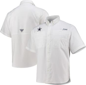 The Men's Columbia White Dallas Cowboys Tamiami Omni-Shade Button-Down Shirt is the perfect way to show your support for the Dallas Cowboys. Made from durable polyester, this shirt features Omni-Shade technology to protect you from the sun's harmful rays. The button-down collar and full-button front give it a classic look, while the embroidered graphics and woven applique add a touch of team spirit. Whether you're cheering on the Cowboys at the game or just showing your support around town, this shirt is sure to turn heads.