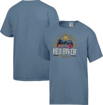 Men's ComfortWash Blue Texas Longhorns vs. Oklahoma Sooners Red River Rivalry Battle For The Golden Hat Matchup T-Shirt