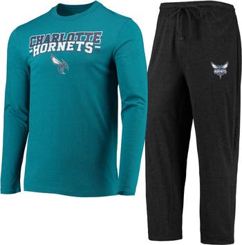Men's Concepts Sport Black/Teal Charlotte Hornets Long Sleeve T-Shirt & Pants Sleep Set