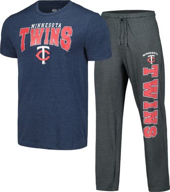 Relax with a double dose of Minnesota Twins flair in this Meter Sleep set from Concepts Sport. It includes a tee and pants with bold Minnesota Twins graphics. Comfortable cotton and polyester materials combine for optimal softness as you dream of your squad winning the next big game.