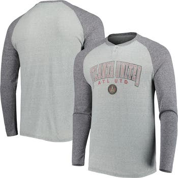 The Men's Concepts Sport Heathered Gray/Heathered Charcoal Atlanta United FC Ledger Raglan Long Sleeve T-shirt is the perfect way to show your support for the Atlanta United FC. Made from a comfortable cotton and polyester blend, this long sleeve tee features distressed screen print graphics and raglan sleeves for a stylish look. The two-button placket adds a touch of sophistication, while the crew neck ensures a comfortable fit. Whether you're cheering on the team at the stadium or just showing your support around town, this t-shirt is sure to become a favorite.
