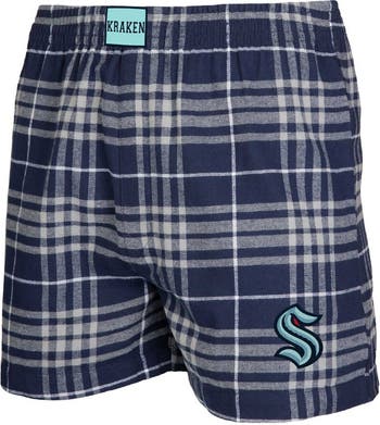 Hit the hay comfortably in these Seattle Kraken Concord flannel boxers from Concepts Sport. They feature the team logo embroidered on a classic plaid pattern in team colors. The elastic waistband gives these Seattle Kraken boxers a flexible fit that helps you sleep soundly.