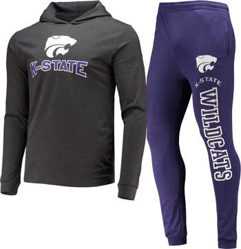 Men's Concepts Sport Purple/Heather Charcoal Kansas State Wildcats Meter Long Sleeve Hoodie T-Shirt & Jogger Pajama Set