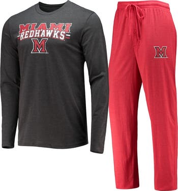 Rest comfortably and warmly on cooler nights in this Miami University RedHawks Meter T-shirt and pants sleep set from Concepts Sport. It features printed Miami University RedHawks graphics with a vintage look. An adjustable waistband also provides a customized fit for added comfort.