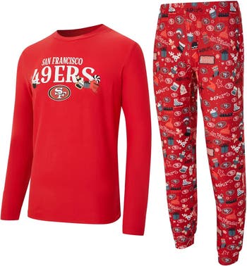 Show off your San Francisco 49ers pride even while relaxing in this Chestnut Long Sleeve Top & Pants Set from Concepts Sport. Crafted from a soft blend of polyester and spandex, this set ensures ultimate comfort for lounging at home or cheering on the San Francisco 49ers. The all-over festive print on the pants adds a touch of team spirit, while the screen-printed team wordmark and logo on the chest proudly display your San Francisco 49ers pride.