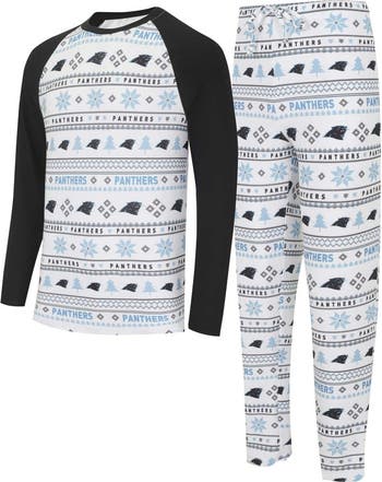 Combining comfort with your Carolina Panthers fandom is easy thanks to this Concepts Sport Tinsel Sleep set. It includes a soft tee with roomy raglan sleeves and pants with an adjustable waist and open-leg silhouette. Each piece features spirited Carolina Panthers graphics that also spotlight your love for the winter season.