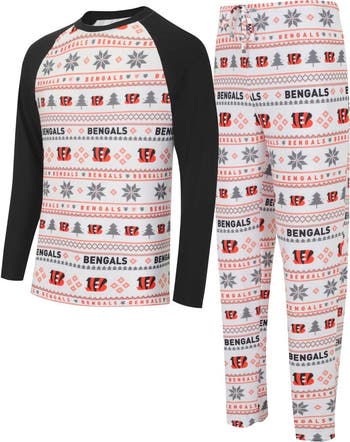 Combining comfort with your Cincinnati Bengals fandom is easy thanks to this Concepts Sport Tinsel Sleep set. It includes a soft tee with roomy raglan sleeves and pants with an adjustable waist and open-leg silhouette. Each piece features spirited Cincinnati Bengals graphics that also spotlight your love for the winter season.