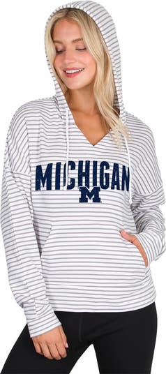 Show your Michigan Wolverines pride in cozy comfort with this French Terry Striped V-Neck Pullover Hoodie from Concepts Sport. The dropped shoulders create an oversized, relaxed fit, perfect for lounging or layering on game day. The distressed graphics printed across the chest add a vintage touch, showcasing your Michigan Wolverines pride in style.