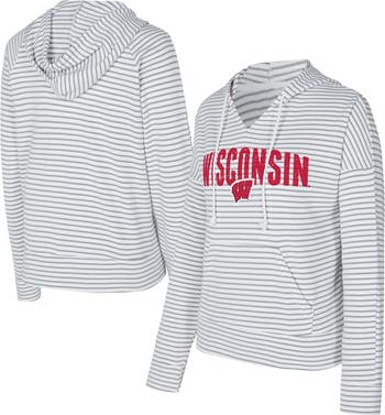 Men's Concepts Sport White/Gray Wisconsin Badgers French Terry Striped V-Neck Pullover Hoodie