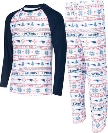 Combining comfort with your New England Patriots fandom is easy thanks to this Concepts Sport Tinsel Sleep set. It includes a soft tee with roomy raglan sleeves and pants with an adjustable waist and open-leg silhouette. Each piece features spirited New England Patriots graphics that also spotlight your love for the winter season.