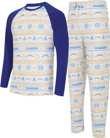 Men's Concepts Sport White/Powder Blue Los Angeles Chargers Tinsel Raglan Long Sleeve T-Shirt & Pants Sleep Set