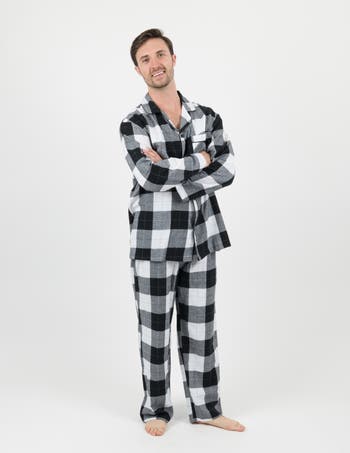 Celebrate the holidays in timeless style with this Men’s Flannel Holiday Pajama Set. Crafted from 100% brushed cotton flannel, this two-piece design includes a button-front shirt with a classic collar and matching pants with an elastic waistband and adjustable drawstring. Soft and breathable with a brushed finish for warmth, this set comes in festive holiday flannel prints—Red, Green, Plaid Black and White, Plaid Black and Red, Plaid Black and Green, Plaid Blue and Navy—making it an ideal choice for Christmas pajamas, holiday lounging, or gift-ready seasonal sleepwear. Designed as cozy loungewear, perfect for relaxing or gifting this holiday season.