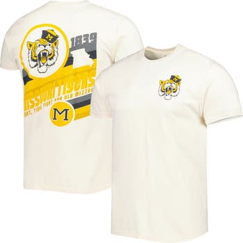 The Men's Cream Missouri Tigers Vault Vintage Comfort Color T-Shirt is a timeless tribute to your unwavering support for the Missouri Tigers. Its distressed screen print graphics evoke the rich history of the team, while the soft cotton material ensures comfort throughout the game. Whether you're cheering from the stands or representing the Tigers off the field, this vintage-inspired tee is a must-have for any devoted fan.