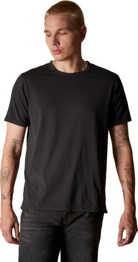 - Classic round neck / crew neck T-shirt with a subtle logo on the sleeve.