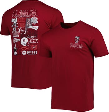 The Men's Crimson Alabama Crimson Tide Vintage Through the Years 2-Hit T-Shirt is a timeless tribute to the storied history of the Alabama Crimson Tide. Its screen-printed graphics proudly display the team's iconic logo and vintage designs, evoking memories of past triumphs and inspiring future victories. Crafted from soft cotton, this T-shirt offers both comfort and durability, making it the perfect choice for any devoted Alabama Crimson Tide fan.