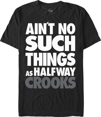 - Strut your stuff with this stylish new men's t-shirt that is perfect for every occasion! Featuring the phrase: "Ain’t No Such Things As Halfway Crooks" in large green and red letters across the front.