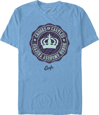 Behind every castle, there's always a crook! That's the motto of Crooks & Castles, where luxury and streetwear combine to celebrate the hustle to get to the crown. This Men's Crooks & Castles Honor Amongst Thieves Purple Badge Front and Back Graphic T-Shirt features an emblem decorated with purple chains, a crown, and the phrase: "Honor Amongst Thieves" on the front and the brand name printed on the back of the tee. Shop officially licensed Crooks & Castles gear today and get ready to build your empire in style!