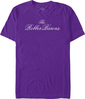 - Strut your stuff with this stylish new men's t-shirt that is perfect for every occasion! Featuring the text: "The Robber Barons" in script white lettering on the front and the names of the original Crooks printed on the back.