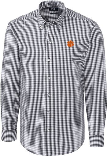Men's Cutter & Buck Charcoal Clemson Tigers Big & Tall Stretch Gingham Long Sleeve Button Down Shirt