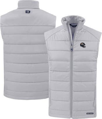 Gear up for game day with this Denver Broncos Helmet Evoke Hybrid Eco Softshell Recycled Full-Zip Vest from Cutter & Buck. Advanced PrimaLoft technology and a DWR finish provide lightweight warmth and water resistance, making this a versatile addition to your closet. Its striking embroidered graphics show off your unwavering pride in a stylish way, while the zippered side pockets keep all your valuables safe while you enjoy the next big Denver Broncos game.