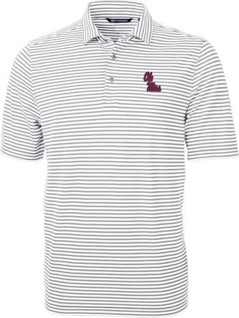 Men's Cutter & Buck Gray Ole Miss Rebels Virtue Eco Pique Stripe Recycled Polo