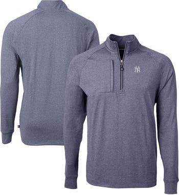Men's Cutter & Buck Heather Navy New York Yankees Big & Tall Adapt Eco Knit Stretch Recycled Quarter-Zip Pullover Top