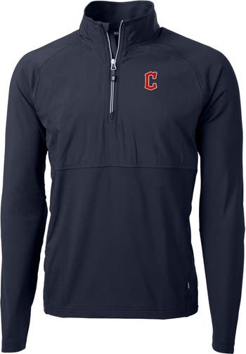 Men's Cutter & Buck Navy Cleveland Guardians Adapt Eco Knit Hybrid Recycled Quarter-Zip Pullover Jacket