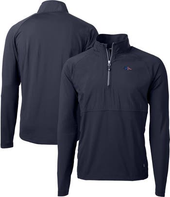 Men's Cutter & Buck Navy Denver Broncos Adapt Eco Knit Hybrid Recycled Quarter-Zip Pullover Top