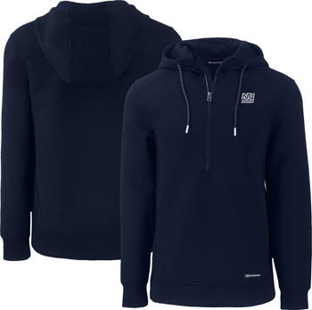 Men's Cutter & Buck Navy New York Giants Throwback Roam Eco Half-Zip Recycled Pullover Hoodie