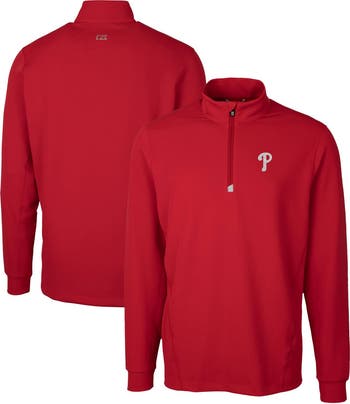 Men's Cutter & Buck Red Philadelphia Phillies Traverse Stretch Quarter-Zip Pullover Top