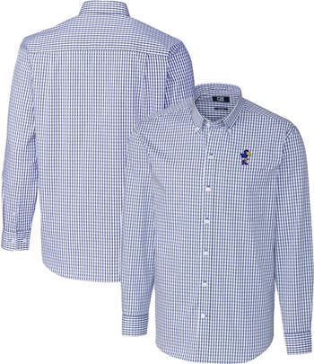 Men's Cutter & Buck Royal Kansas Jayhawks Easy Care Stretch Gingham Long Sleeve Button-Down Shirt