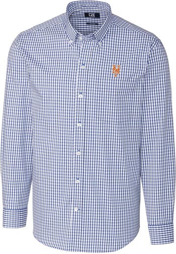 Men's Cutter & Buck Royal New York Mets Big & Tall Stretch Gingham Long Sleeve Button-Down Shirt