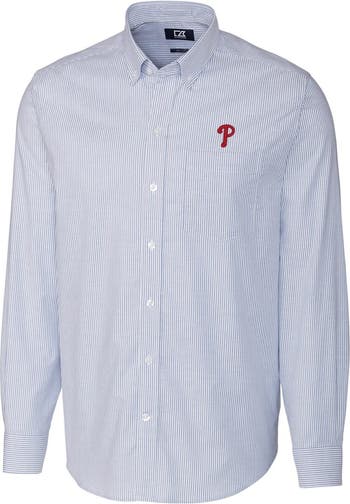 Men's Cutter & Buck Royal Philadelphia Phillies Big & Tall Stretch Oxford Striped Long Sleeve Button-Down Shirt