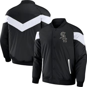 Draw attention on game day by sporting this full-snap Baseball jacket from the Darius Rucker Collection by Fanatics. It features an impressive Chicago White Sox design with bold team embroidery and accents for a standout look. Raglan sleeves offer a roomier fit for a natural range of arm motion, ensuring you can cheer the Chicago White Sox on to victory unimpeded.