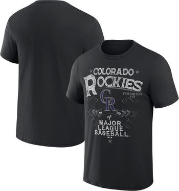 The Men's Darius Rucker Collection by Fanatics Black Colorado Rockies Beach Splatter T-Shirt is a must-have for any true Rockies fan. With its distressed screen print graphics, this shirt will show off your team spirit in style. The cotton material is soft and comfortable, perfect for cheering on the Rockies at the game or just relaxing at home.