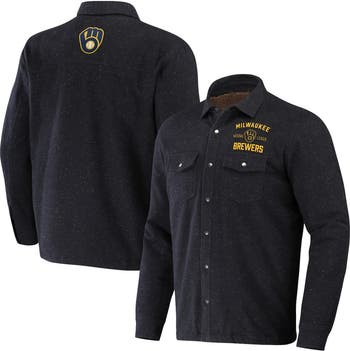 This Ringstop shacket from the Darius Rucker Collection by Fanatics is a great layer to sport on chilly game days. It features unmistakable Milwaukee Brewers graphics on the left chest and back for a timeless yet striking look. A heavyweight design crafted with warm Sherpa fleece helps you to sustain snugness with each wear.