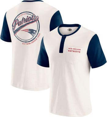 Elevate your everyday style with this New England Patriots Henley Colorblock Slub Pocket T-Shirt from the Darius Rucker Collection by Fanatics. The slub fabric gives it a unique, textured look, while the three-button henley placket elevates this tee beyond your average New England Patriots apparel, making it a stylish way to show your team spirit.. The distressed, printed wordmark on the front pocket and team graphics on the back with the established year offer a vintage look that highlights your New England Patriots pride.