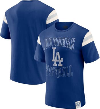 Show off your timeless love for the Los Angeles Dodgers with this Distressed Sleeve Stripe T-Shirt from the Darius Rucker Collection by Fanatics. The distressed screen print graphics give it a vintage vibe that's sure to turn heads, while the contrast-color sleeve stripes add a touch of sporty flair. Made from 100% cotton, this tee offers a soft and breathable feel that's perfect for all-day wear, whether you're cheering for the Los Angeles Dodgers or hanging out with friends.