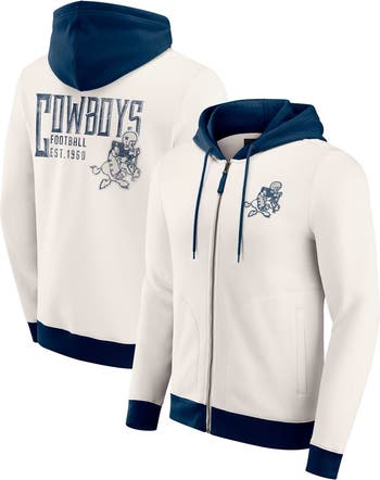 Showcase your timeless Dallas Cowboys pride with this Distressed Graphics Full-Zip Hoodie from the Darius Rucker Collection by Fanatics. Crafted from a soft cotton blend, this hoodie offers warmth and comfort throughout the day. The team logo embroidered on the left chest and distressed screen print graphics on the back pay homage to the Dallas Cowboys' storied history.