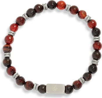 Men's Dark Red & Black Stone Beaded Bracelet