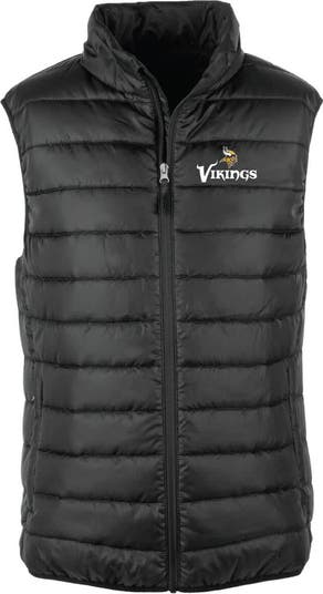Show your Minnesota Vikings pride with this Alberta Full-Zip Puffer Vest from Dunbrooke. The water-resistant design ensures you stay dry and comfortable, making it perfect for those unpredictable weather days. The embroidered team logo proudly displays your Minnesota Vikings pride, making it a stylish and functional addition to any fan's wardrobe.