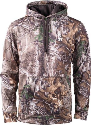 The Men's Dunbrooke Camo Los Angeles Dodgers Champion Realtree Pullover Hoodie is the perfect way to show your support for the Los Angeles Dodgers. This lightweight hoodie is made of durable polyester and features embroidered graphics of the Dodgers logo and Realtree camouflage. The mesh-lined hood and micro-fleece lining will keep you warm and comfortable on chilly game days. Whether you're cheering from the stands or just hanging out at home, this hoodie is a must-have for any Dodgers fan.